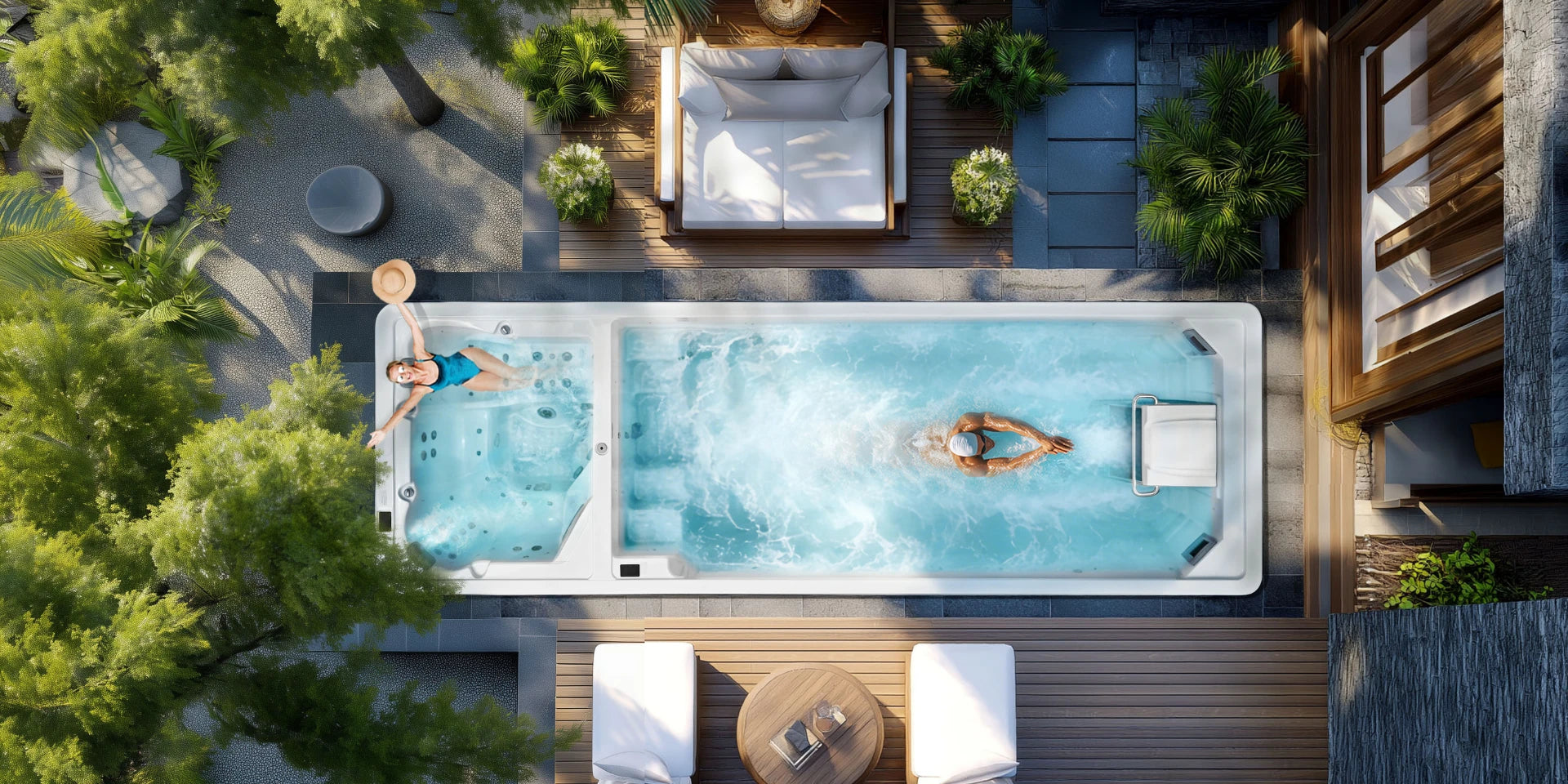 Combine effective fitness training with premium relaxation. After your swim, unwind in ergonomically designed seating with flat massage jets that follow the body's contours, providing a balanced hydrotherapy experience that helps relieve tension and support muscle recovery.